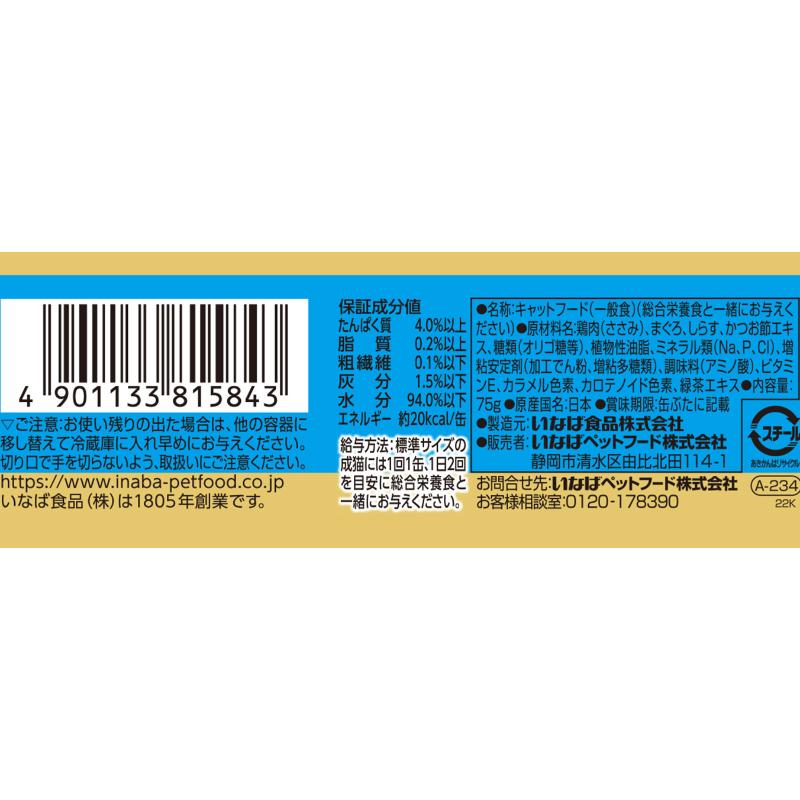 [いなばペットフード(直送)]CIAO だしスープ まぐろ・ささみ しらす入り 75g ※メーカー直送 ※発注単位・最低発注数量(混載50ケース以上)にご注意下さい