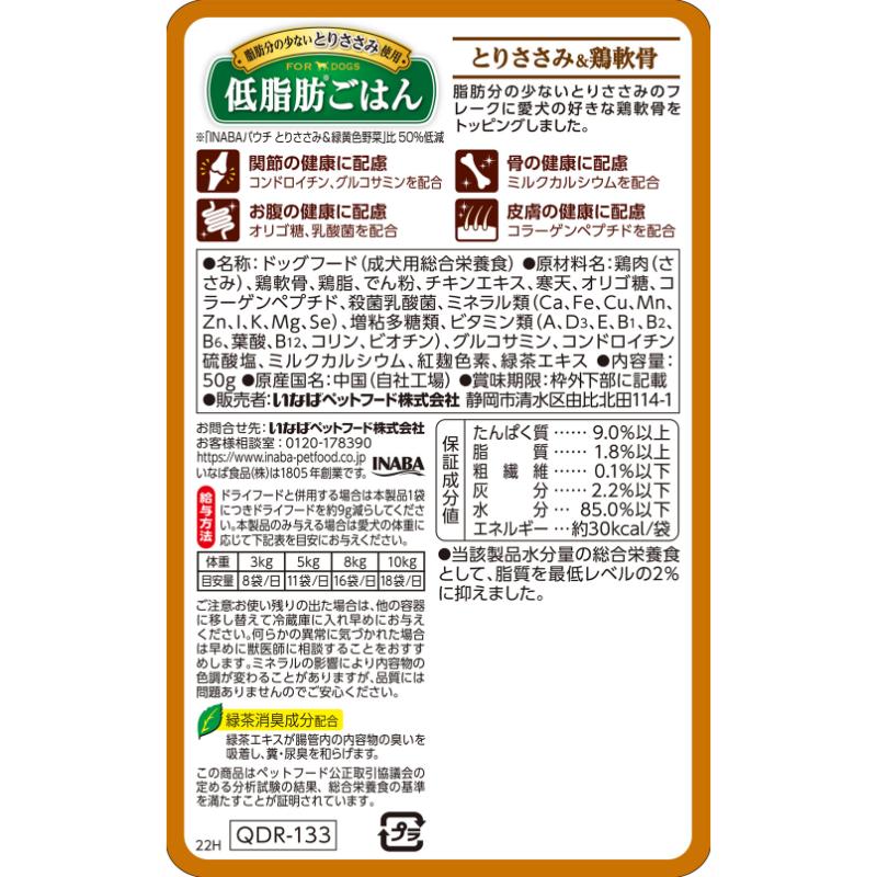[いなばペットフード(直送)]いなば 低脂肪ごはん とりささみ&鶏軟骨 50g ※メーカー直送 ※発注単位・最低発注数量(混載50ケース以上)にご注意下さい
