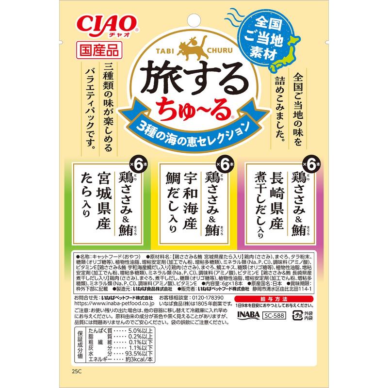 [いなばペットフード(直送)]CIAO 旅するちゅ~る 3種の海の恵セレクション 6g×18本 ※メーカー直送 ※発注単位・最低発注数量(混載50ケース以上)にご注意下さい