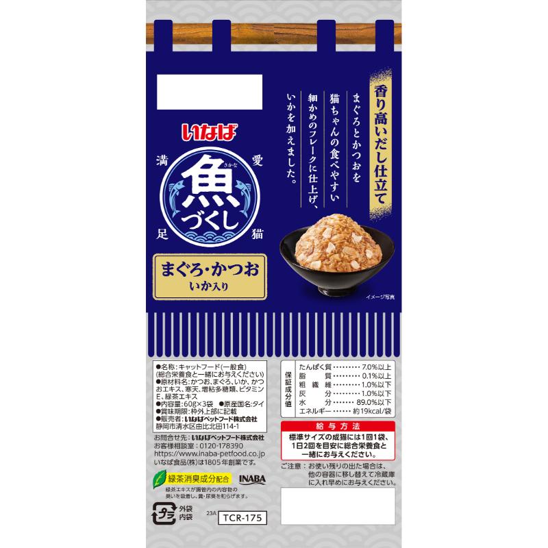 [いなばペットフード(直送)]いなば 魚づくし まぐろ・かつお いか入り 60g×3袋入 ※メーカー直送 ※発注単位・最低発注数量(混載50ケース以上)にご注意下さい