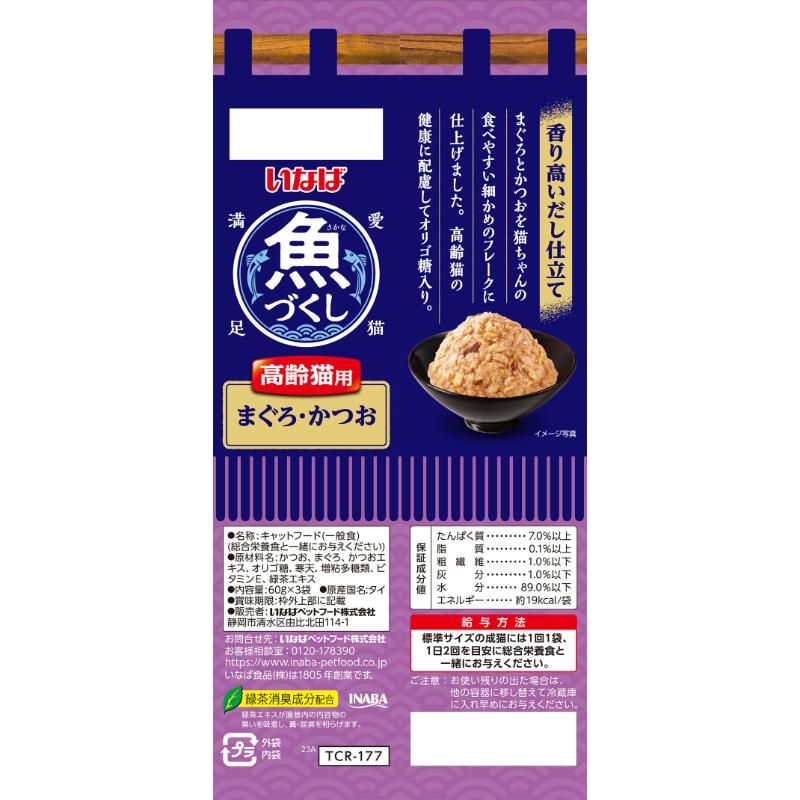 [いなばペットフード(直送)]いなば 魚づくし 高齢猫用 まぐろ・かつお 60g×3袋入 ※メーカー直送 ※発注単位・最低発注数量(混載50ケース以上)にご注意下さい