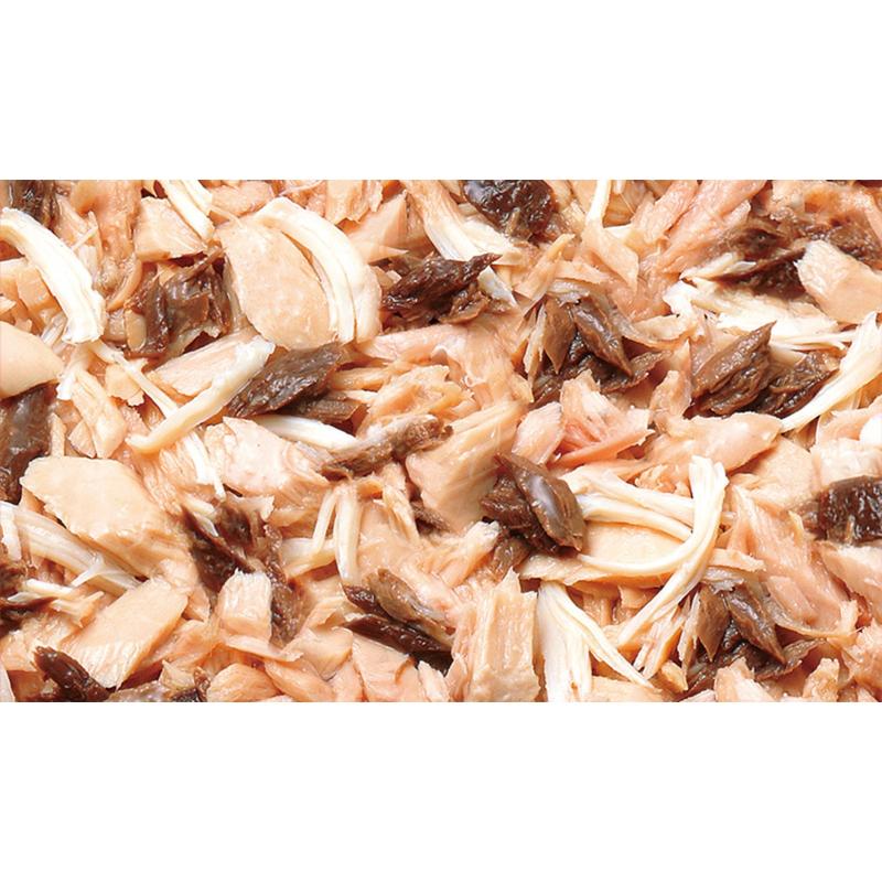 | 素材 | <原材料> かつお、まぐろ、鶏肉(ささみ)、フィッシュエキス、増粘多糖類、ビタミンE、緑茶エキス <保証成分> たんぱく質9.0%以上、脂質0.4%以上、粗繊維0.1%以下、灰分2.0%以下、水分88.5%以下 <エネルギー> 約60kcal/100g |