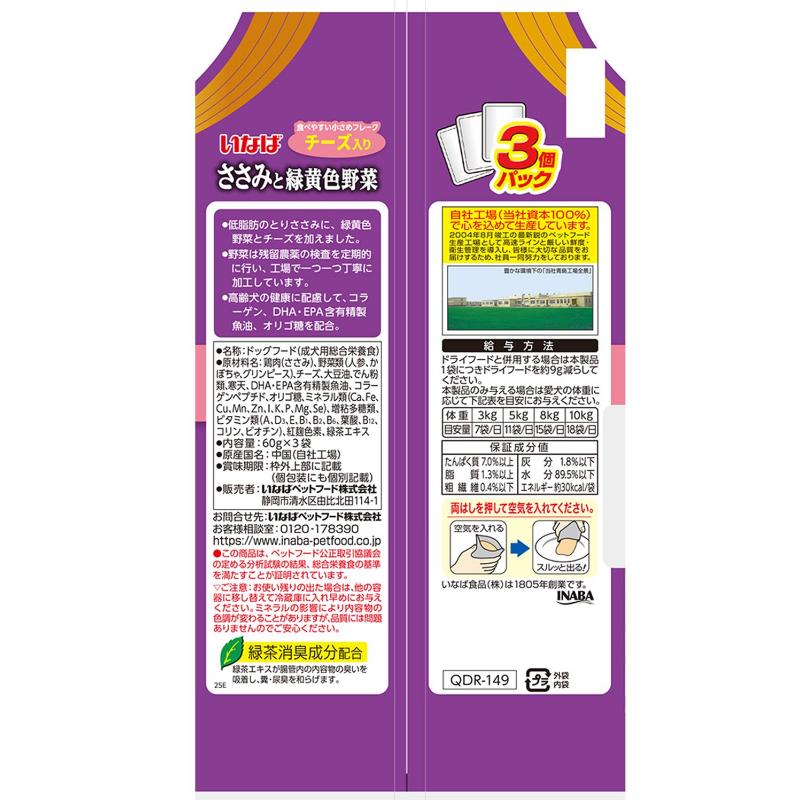 [いなばペットフード(直送)]いなば ささみと緑黄色野菜 11歳からのチーズ入り 60g×3袋 ※メーカー直送 ※発注単位・最低発注数量(混載50ケース以上)にご注意下さい