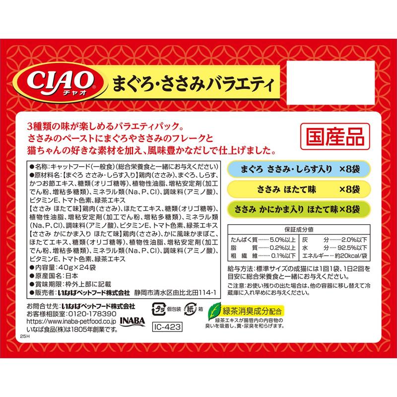 [いなばペットフード(直送)]CIAO パウチ まぐろ・ささみバラエティ 40g×24袋 ※メーカー直送 ※発注単位・最低発注数量(混載50ケース以上)にご注意下さい【メーカーフェア5】