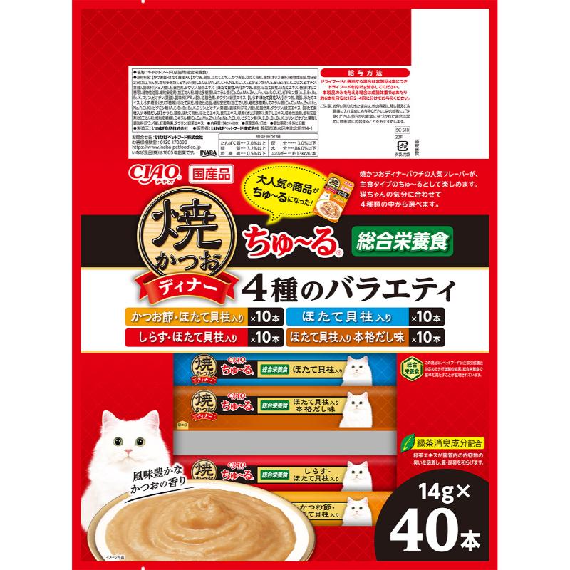 [いなばペットフード(直送)]焼かつおディナーちゅ~る 4種のバラエティ 14g×40本 ※メーカー直送 ※発注単位・最低発注数量(混載50ケース以上)にご注意下さい【メーカーフェア5】