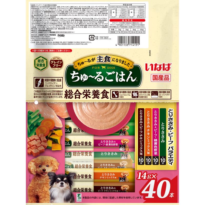[いなばペットフード(直送)]ちゅ~るごはん とりささみ・ビーフバラエティ 14g×40本 ※メーカー直送 ※発注単位・最低発注数量(混載50ケース以上)にご注意下さい【メーカーフェア5】