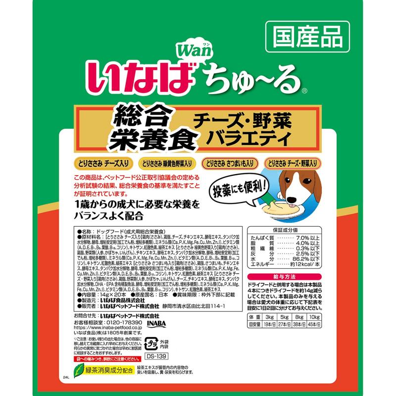 [いなばペットフード(直送)]いなば Wanちゅ~る 総合栄養食 チーズ・野菜バラエティ 14g×20本 ※メーカー直送 ※発注単位・最低発注数量(混載50ケース以上)にご注意下さい【メーカーフェア5】