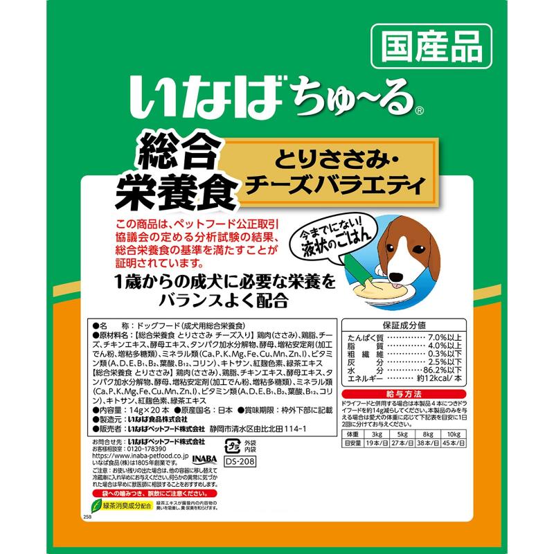 [いなばペットフード(直送)]いなば ちゅ~る総合栄養食 とりささみ・チーズバラエティ 20本 ※メーカー直送 ※発注単位・最低発注数量(混載50ケース以上)にご注意下さい【メーカーフェア5】