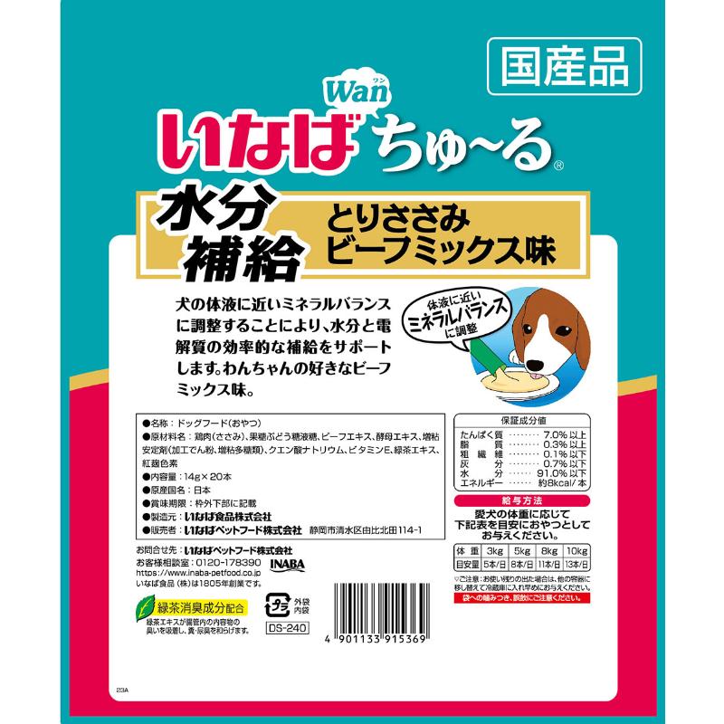 [いなばペットフード(直送)]いなば ちゅ~る 水分補給 とりささみ ビーフミックス味 14g×20本入 ※メーカー直送 ※発注単位・最低発注数量(混載50ケース以上)にご注意下さい【メーカーフェア5】