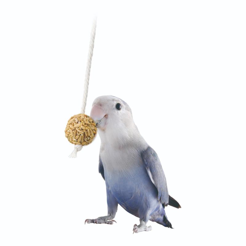 ・ロープの先をほどいて外すと、転がして遊ぶおもちゃにすることもできます。放鳥時のコミュニケーションにぴったりです。