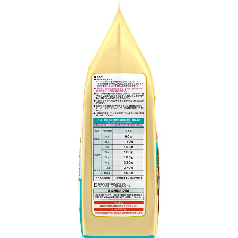 | 注意事項 | ・本商品は成犬以上が対象です。子犬(12ヶ月まで)には子犬用フードをお与えください。 ・粒と具材の色、形、大きさに若干のバラつきがありますが、品質には問題ありません。 ・糖とアミノ酸が反応すること(メイラード反応)で、ささみ粒の色が変わることがありますが、品質に問題はありませんので、安心してお与えください。 ・商品の酸化を防ぎ品質を保つため、脱酸素剤を封入しています。開封後は効果がなくなりますので、誤飲を防ぐため先に捨てて下さい。 |