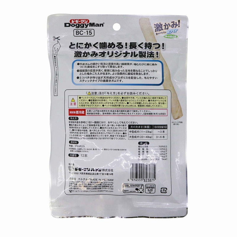 【アウトレット】[ドギーマンハヤシ]ホワイデント 激かみ!歯みがきガムホワイト 中・大型犬用 12本