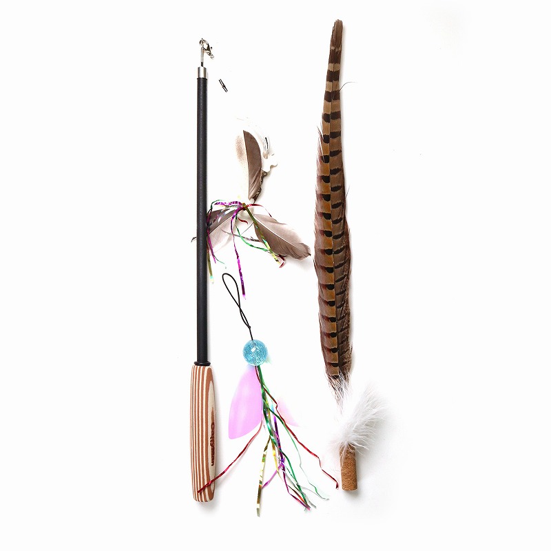 ・竿のしなりを活かしてゆらめかせて遊ぶ羽根には猫ちゃん大興奮必至です。