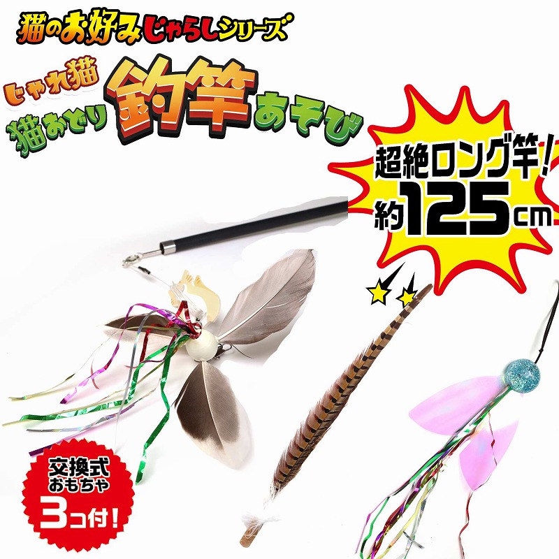 ・全長約125cmの超ロングな4段竿と交換式のおもちゃ3個セット。