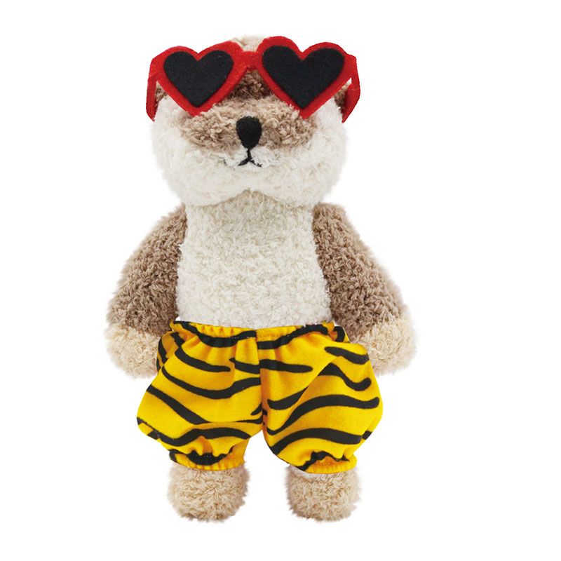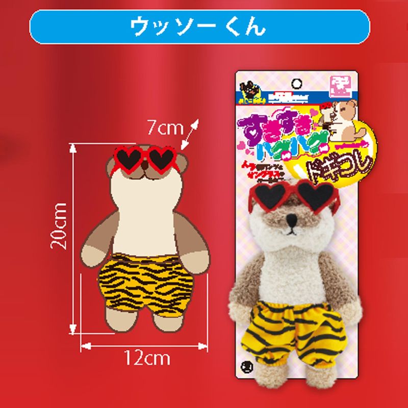長く愛され15年。今回の3代目ハグハグはちょっとおしゃれになりました。サングラスを小粋なカワウソ ウッソー君になりました。遊ぶときはサンプラスを外して元祖すきハグの姿で遊んでね。