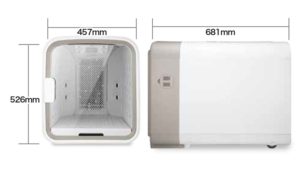 | サイズ | 商品サイズ:W457×H526×D681(mm) 商品重量:約15.7kg 内寸:W362×H410×D470(mm) コードの長さ:AC側1.0m/DC側1.8m |