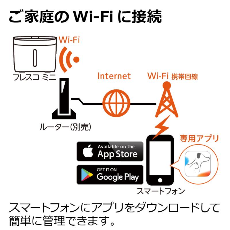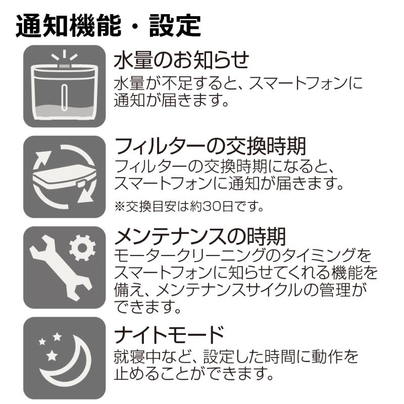 アプリで管理できるスマート給水器です。外出先からでも、スマートフォンで水の状態を管理できます。