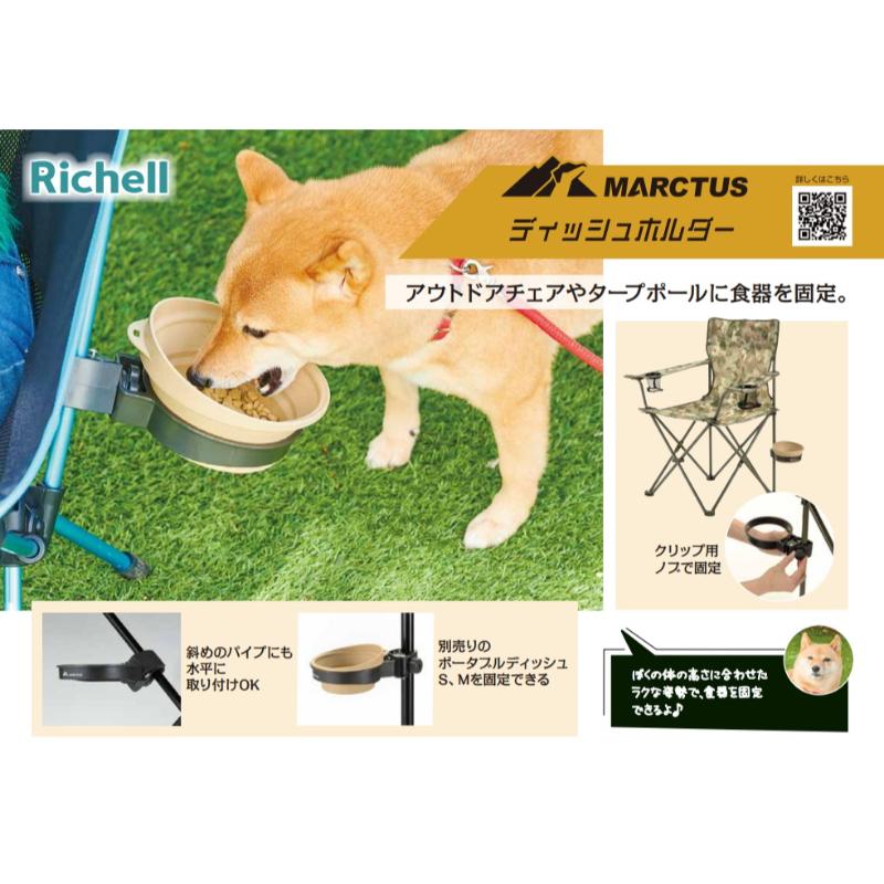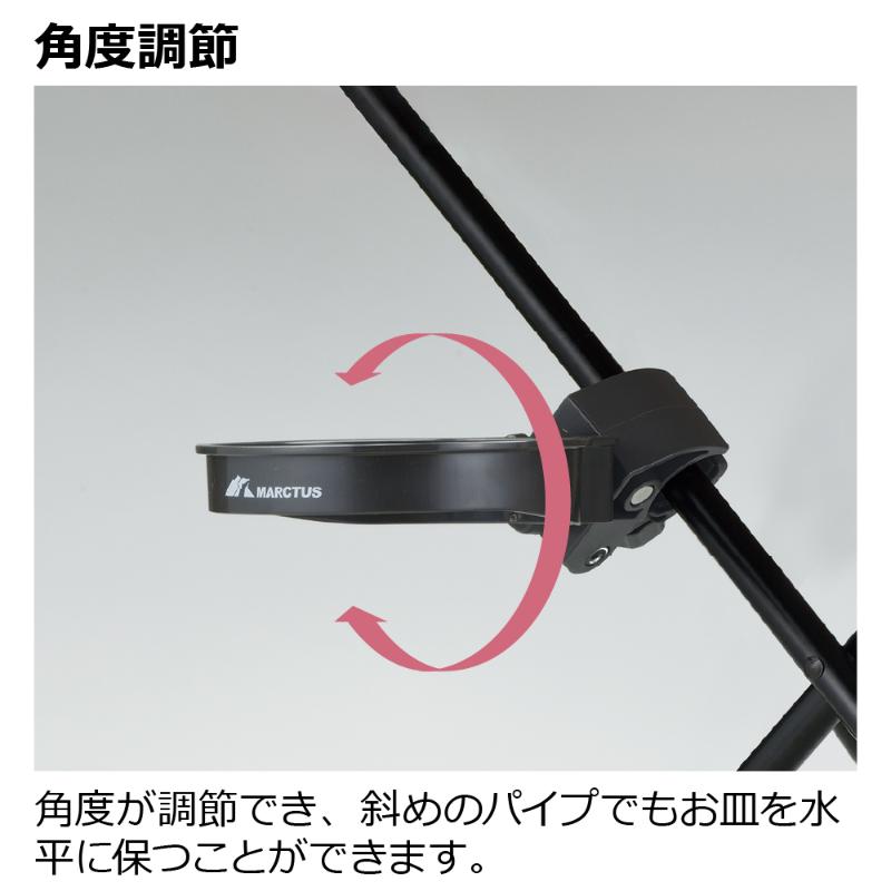 ・チェアなどのパイプ部に「マークタス ポータブル ディッシュ S・M」が取り付けられます。