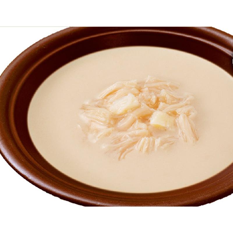 | 素材 | <原材料> 鶏肉(ささみ)、ほたて貝柱、豆乳、ほたてエキス、あさりエキス、糖類(オリゴ糖等)、殺菌乳酸菌、植物性油脂、増粘安定剤(増粘多糖類、加工でん粉)、ミネラル類(Na、P、Cl)、調味料(アミノ酸)、着色料(二酸化チタン)、ビタミンE、緑茶エキス <保証成分> たんぱく質5.0%以上、脂質0.3%以上、粗繊維0.1%以下、灰分1.6%以下、水分93.0%以下 <エネルギー> 約16kcal/袋 |
