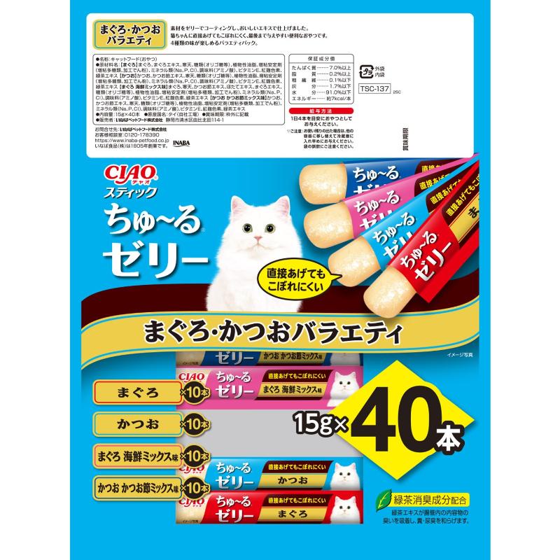 [いなばペットフード]CIAO スティック ちゅ~るゼリー まぐろ・かつおバラエティ 15g×40本