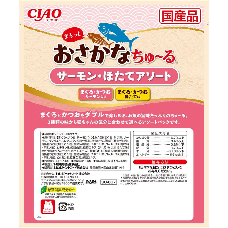[いなばペットフード]CIAO まるっとおさかなちゅ~る サーモン・ほたてアソート 14g×20本