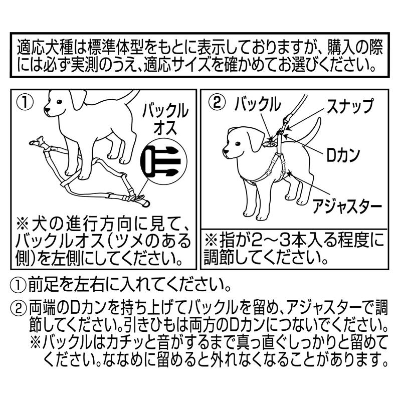ワンタッチで装着できるバックルを採用した犬用胴輪です。