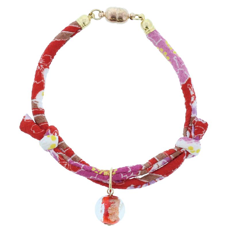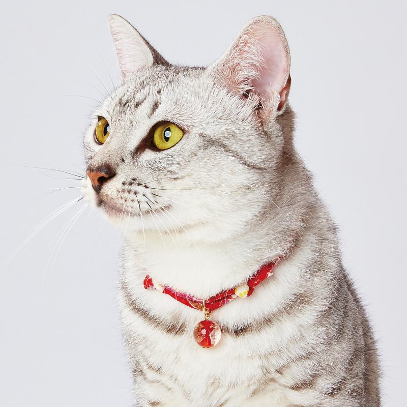トンボ玉付きの高級感ある和柄猫首輪。力が加わると外れる安心仕様のマグネット式で取付け簡単。