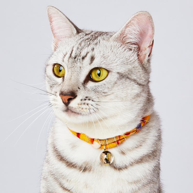 トンボ玉付きの高級感ある和柄猫首輪。力が加わると外れる安心仕様のマグネット式で取付け簡単。