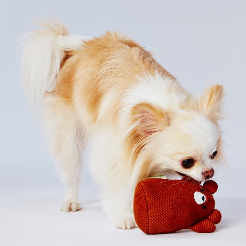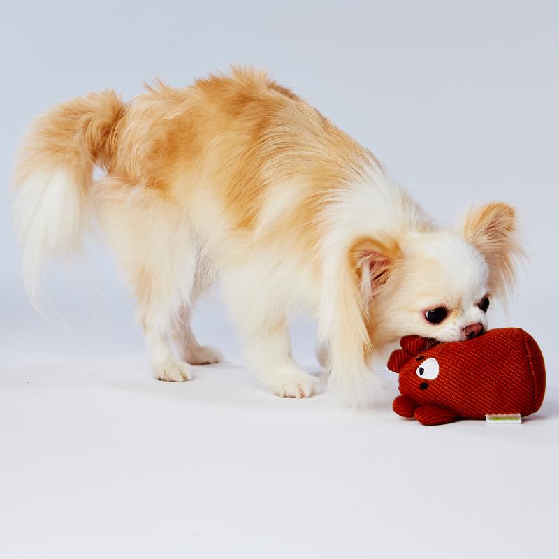 柔らかい肌触りのニット生地の可愛いアニマル玩具です。楽しい笛入り。超小型犬~小型犬でもくわえやすい形状。パピーにもおすすめ。ピューピュー鳴る笛入。