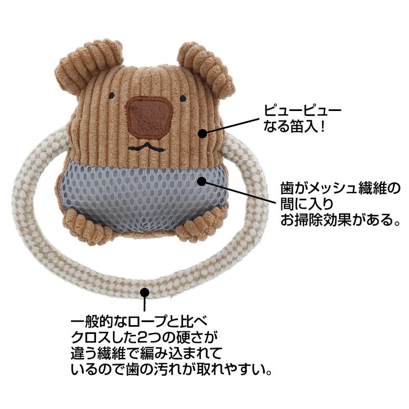 中綿:ポリエステル ロープ:植物繊維(黄麻)、レーヨン、コットン、ポリエステル、ポリウレタン 笛:EVA樹脂 |