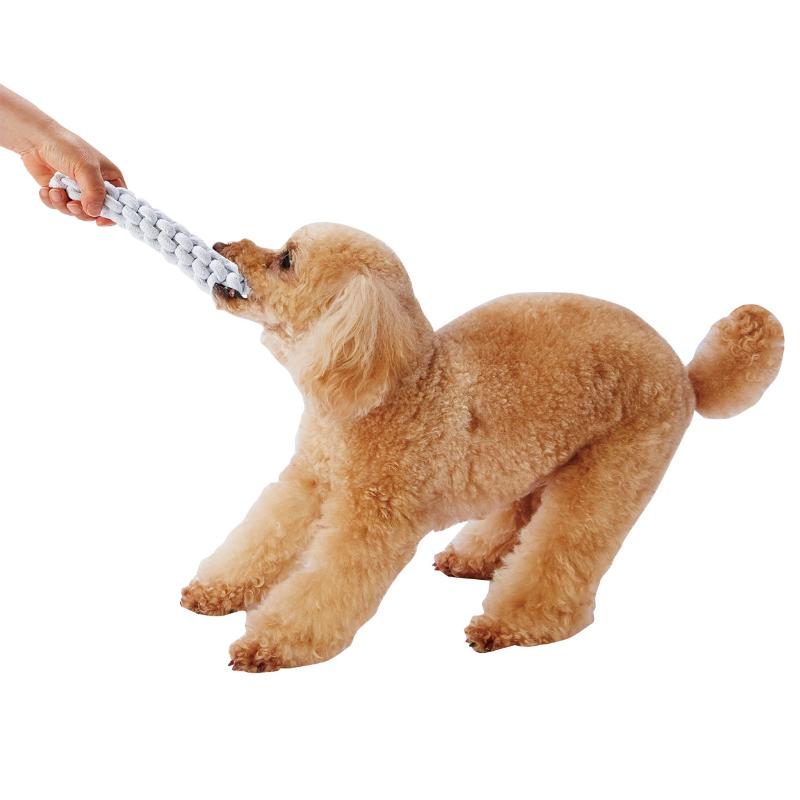 天然素材のやわらかいコットンを編み込んで作った玩具。歯が隙間に入り込み、デンタル効果が期待できます。伸縮性があり、引っ張りっこ遊びもできます