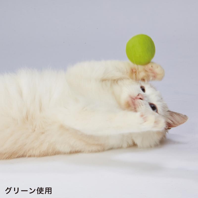 天然素材のウールを使用した玩具。軽いので触るとコロコロ転がる。やわらかく、ツメが引っかかりやすい。