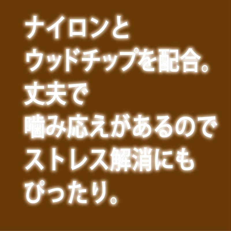 ナイロンと木粉を混ぜた樹脂を使用した犬用玩具。