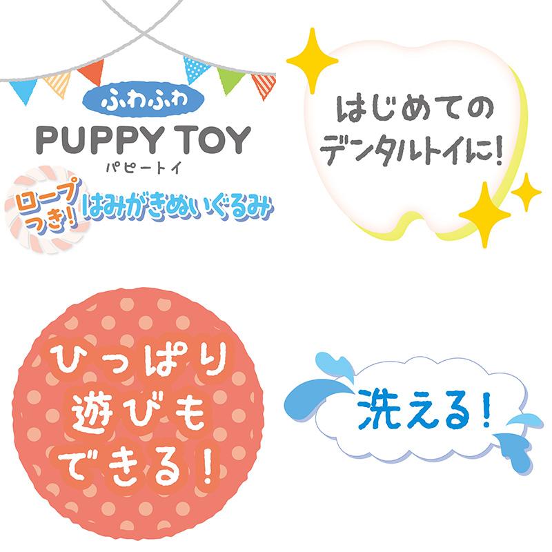 ・パピーでも噛みやすいようにやわらかいパイル生地を使用したぬいぐるみです。
