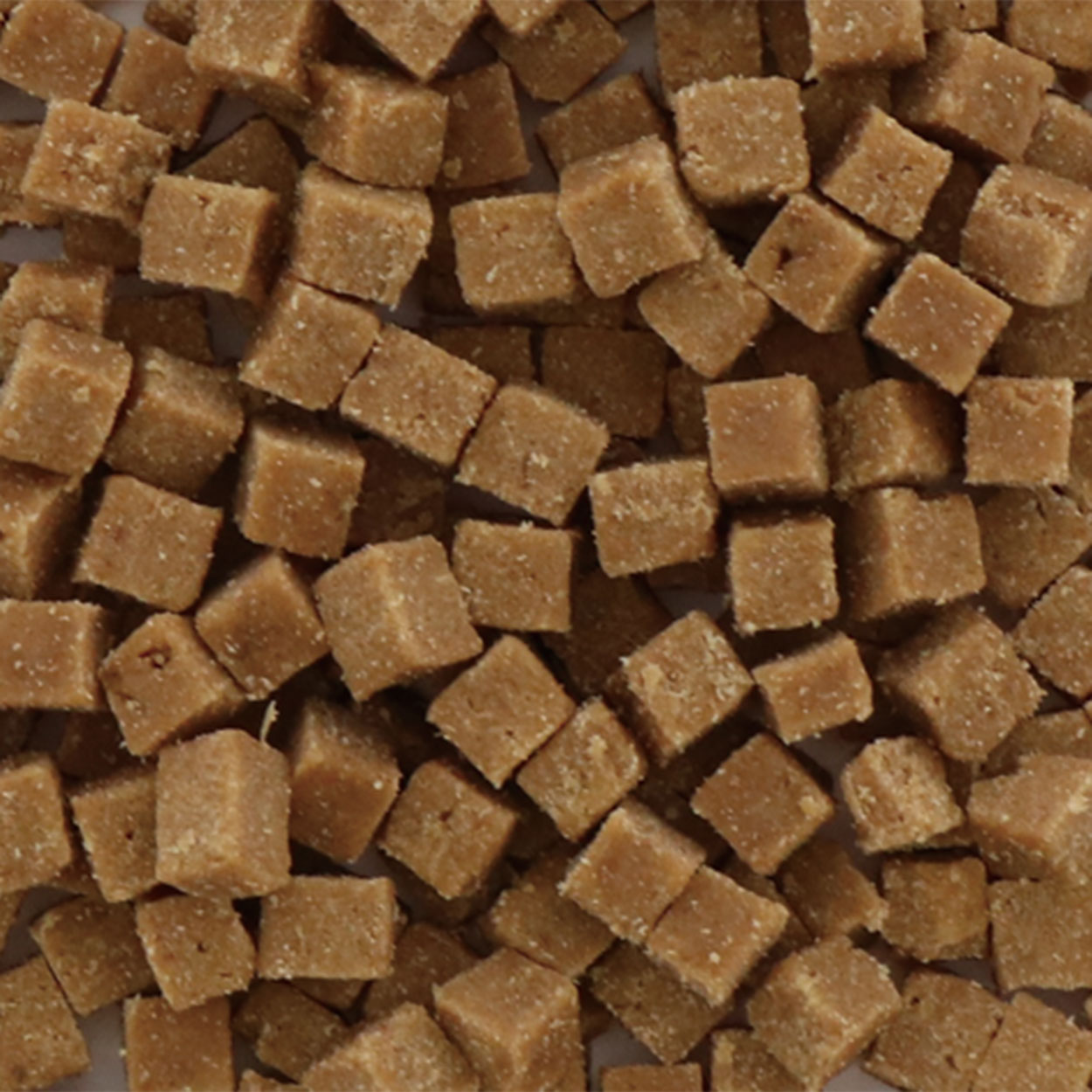 | 素材 | <原材料> 肉類(鶏)、小麦粉、脱脂大豆、でんぷん類、小麦たん白、砂糖、植物性油脂、ミルクカルシウム、食塩、オリゴ糖、グリセリン、プロピレングリコール、ミネラル類(カルシウム、鉄、塩素、カリウム、マンガン、亜鉛、銅、ヨウ素、コバルト、ケイ素)、ソルビトール、リン酸塩(Na)、保存料(ソルビン酸K)、ビタミン類(A、B2、B12、D、E、コリン)、酸化防止剤(エリソルビン酸Na)、メチオニン <保証成分> 粗たん白質14.0%以上、粗脂肪5.0%以上、粗繊維1.0%以下、粗灰分7.0%以下、水分35.0%以下、ナトリウム0.8g以下 <エネルギー> 285kcal/100g |