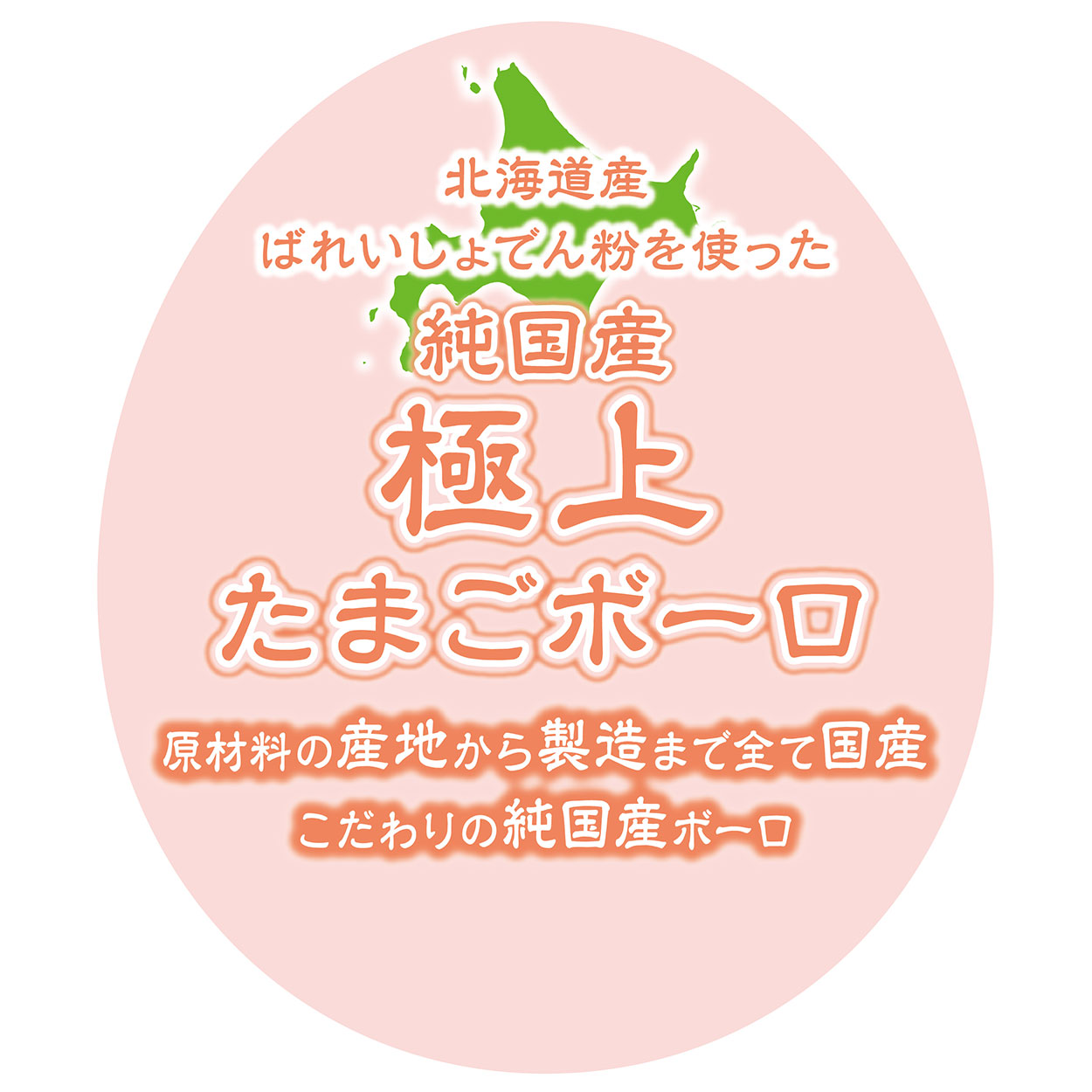 北海道産ばれいしょでん粉を使用。すべて国産原料100%の純国産ボーロ。小麦粉不使用のグルテンフリー。