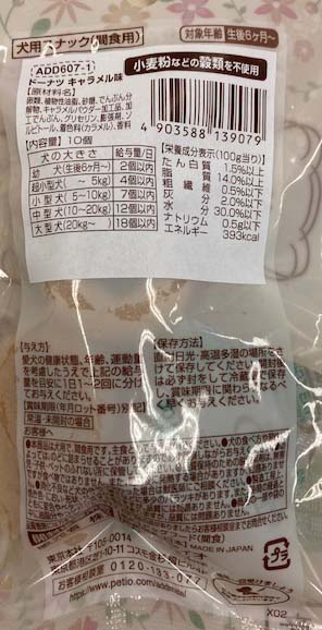 | 注意事項 | ・本商品は犬用で、間食用です。主食として与えないでください。