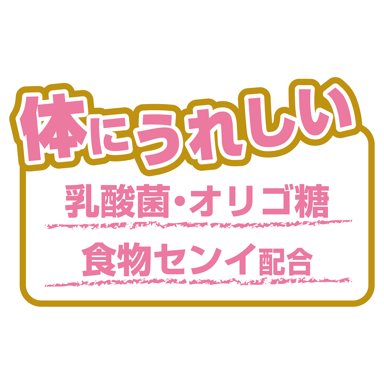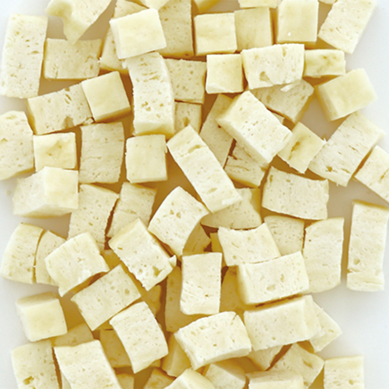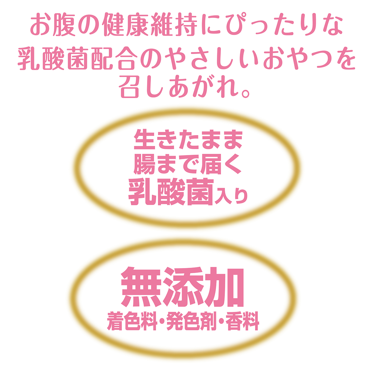 ・お腹の健康維持に生きたまま腸まで届く乳酸菌、オリゴ糖、食物繊維配合のキューブ型おやつです。