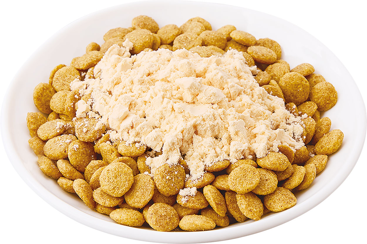 | 素材 | <原材料> ナチュラルチーズ、ケイ酸Ca <保証成分> たん白質26.0%以上、脂質29.5%以上、粗繊維0.5%以下、灰分11.0%以下、水分10.0%以下 ナトリウム2.1g以下 <エネルギー> 526Kcal/100g |