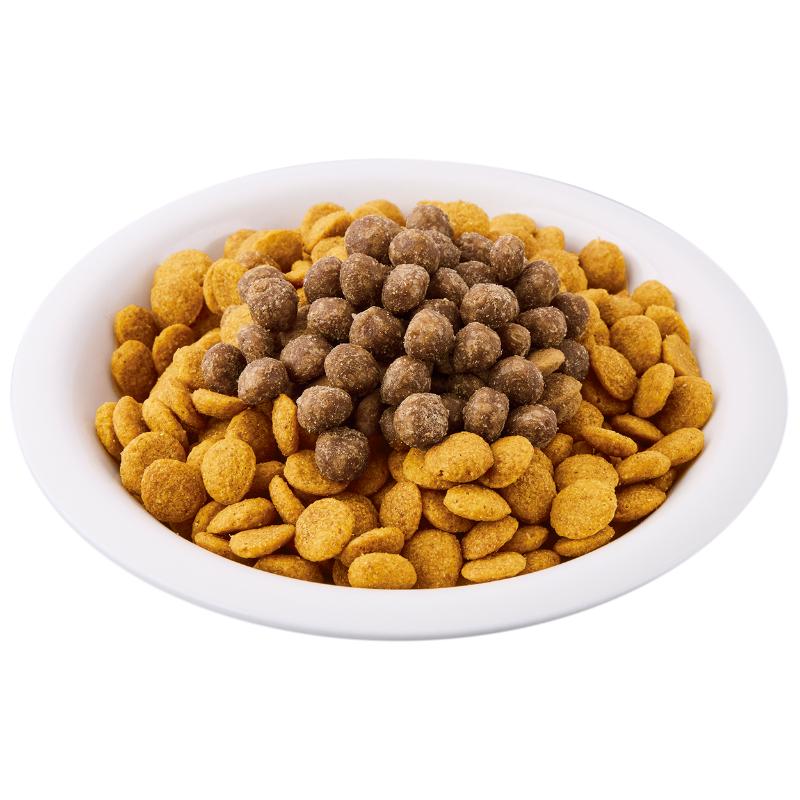 | 素材 | <原材料> 肉類(鶏、鶏レバー)、小麦粉、脱脂大豆、でんぷん類、脱脂米ぬか、植物性油脂、糖類、リモナイト、食塩、かつお粉末、オリゴ糖、酵母、乳酸菌(EC-12株(熱処理済み))、グリセリン、プロピレングリコール、ミネラル類(カルシウム、塩素、亜鉛、鉄、ケイ素、銅、ヨウ素、マンガン、コバルト)、ソルビトール、pH調整剤、リン酸塩(Na)、ビタミン類(A、B2、B12、D、E、コリン、パントテン酸)、酸化防止剤(V.E、エリソルビン酸Na)、グルコサミン、香料、メチオニン <保証成分> たん白質15.5%以上、脂質7.0%以上、粗繊維3.0%以下、灰分8.0%以下、水分30.0%以下、ナトリウム0.6g以下、カルシウム0.35%以上、リン0.28%以上、ビタミンA3 <エネルギー> 298Kcal/100g |