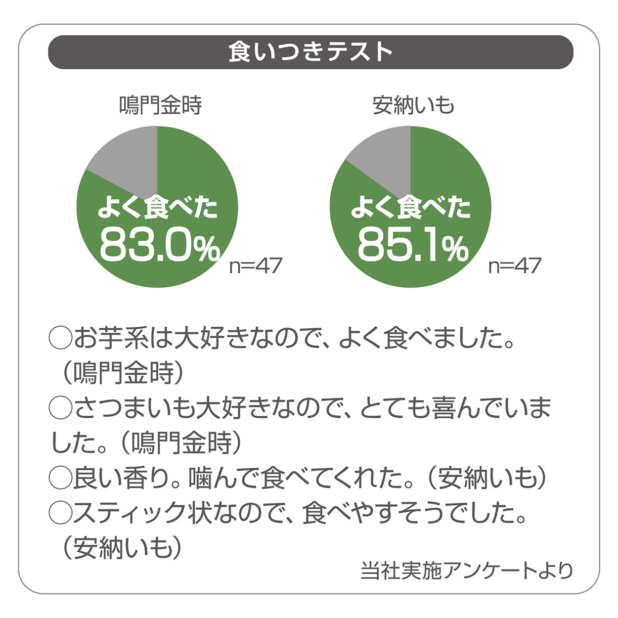 ・食物繊維豊富なさつまいもを使用したしっとりやわらかなトリーツです。