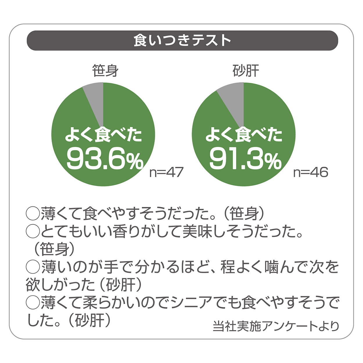 ・低脂肪、良質たん白質豊富な砂肝を食べやすくふんわりと仕上げました。