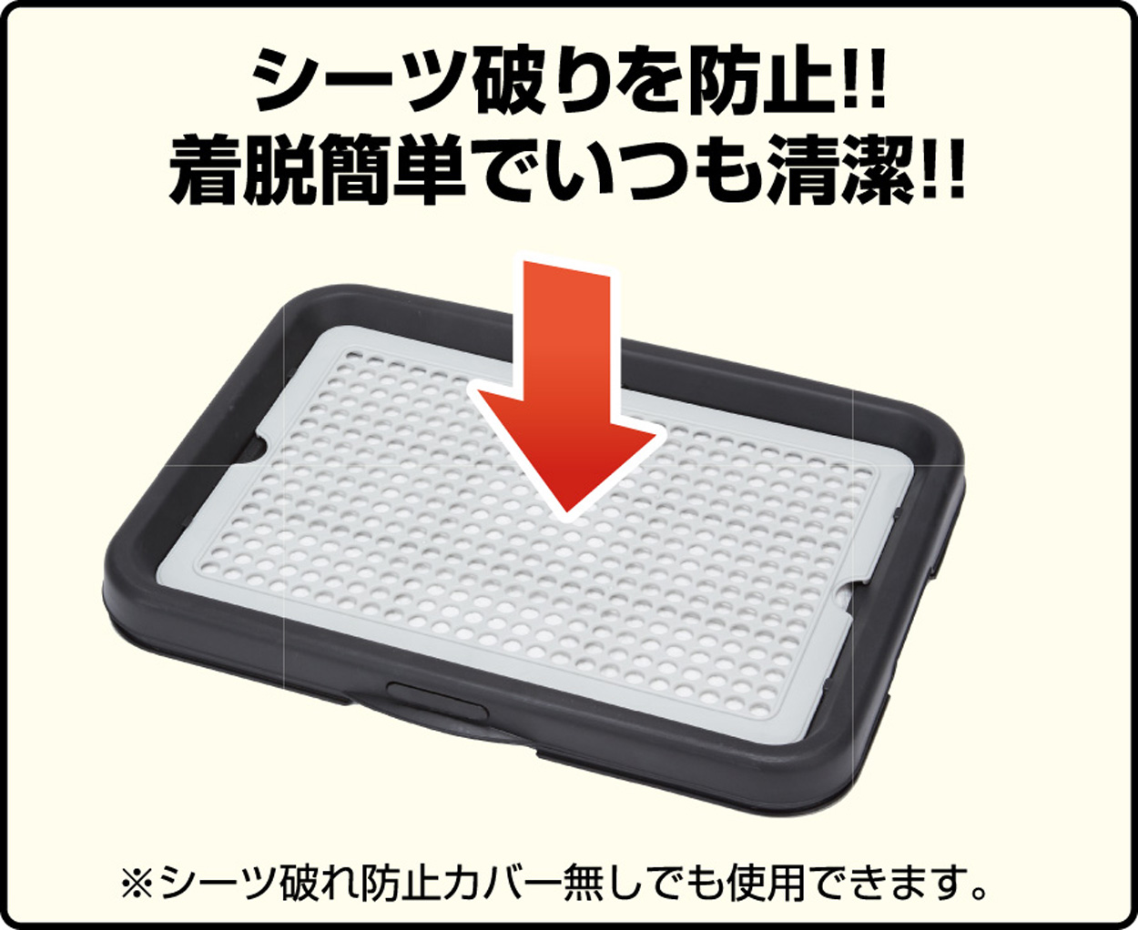 トイレ周りを清潔にしたいオーナーや、シーツを食べたり、破ったりしてしまう愛犬の為の破れ防止カバー付きのトイレです。