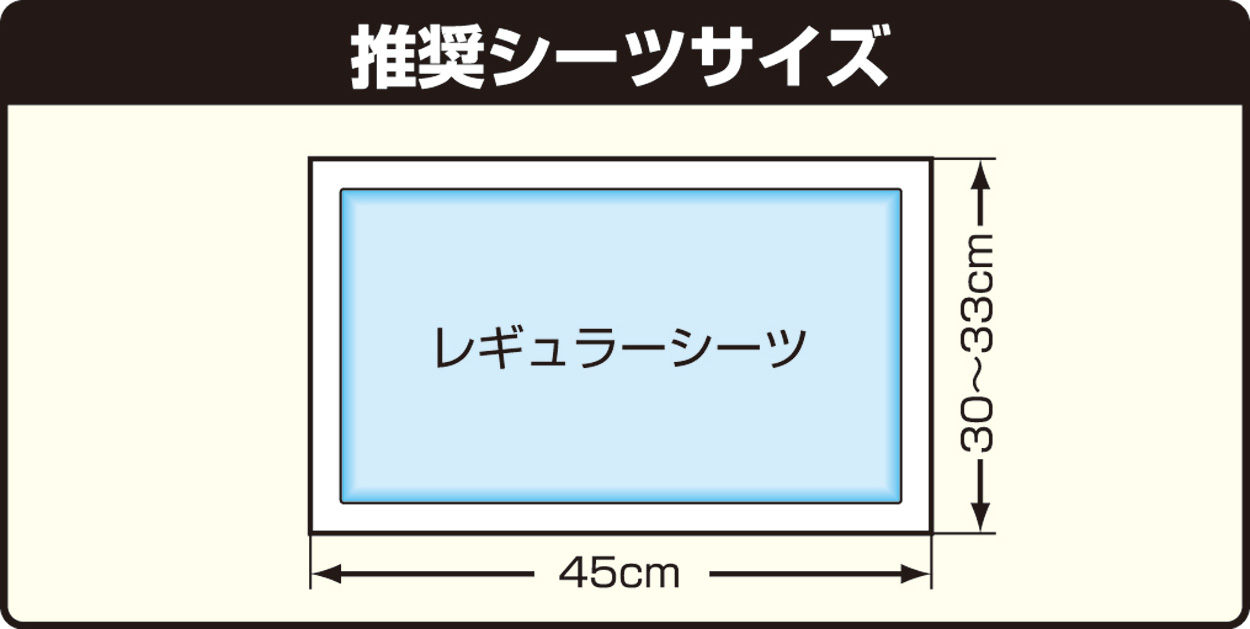| サイズ | パッケージサイズ:W460×H360×D40mm/重量860g 本体サイズ:幅45×高さ4×35.5cm レギュラーシーツサイズ:45cm×30~33cm |