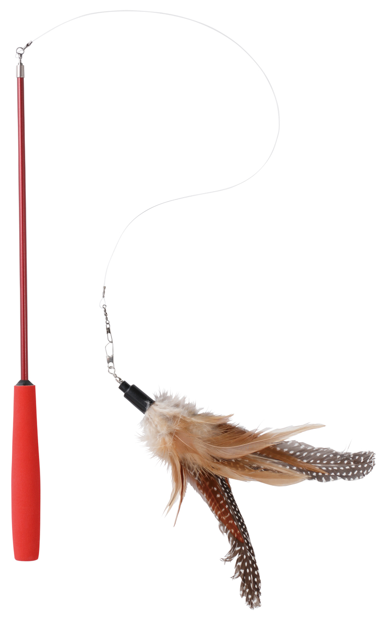 ・箱入り猫もびっくり!90cmまで伸ばせる釣竿タイプ。持ちやすいソフトグリップ。