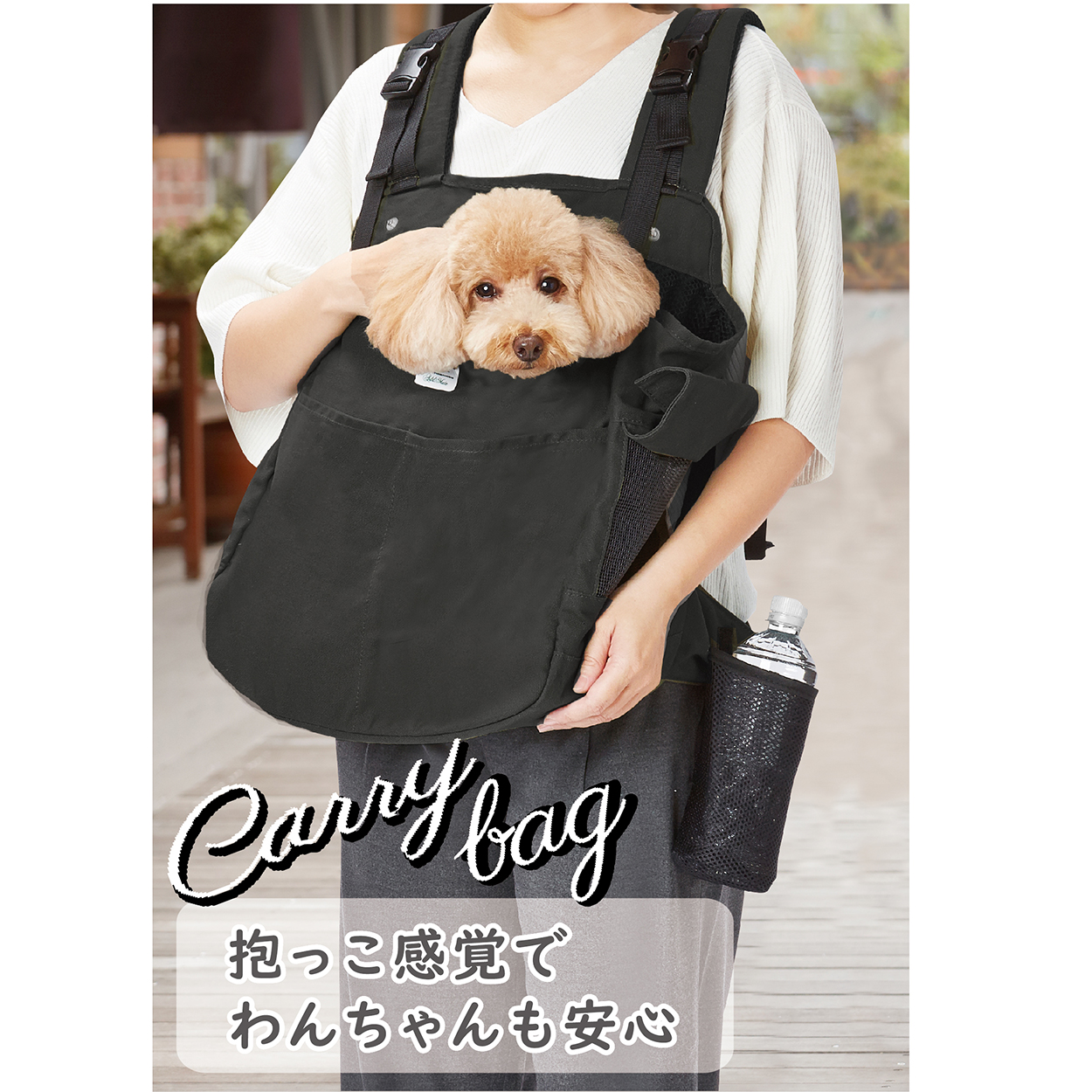 抱っこ感覚でわんちゃんも安心できるキャリーバッグ。