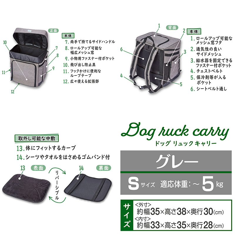 [ペティオアドメイト(直送)]ハグムー ドッグリュックキャリーS グレー