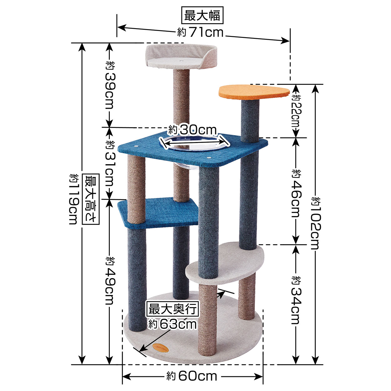 クリアボウルの透明感とモダンカラーが部屋をスタイリッシュに見せる。登ったり、くつろいだり、愛猫にとってお気に入りの場所に!