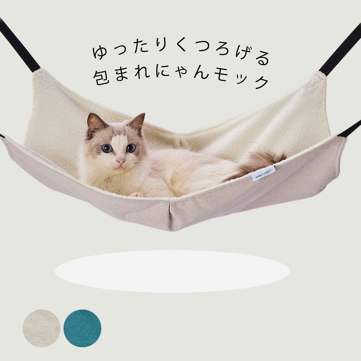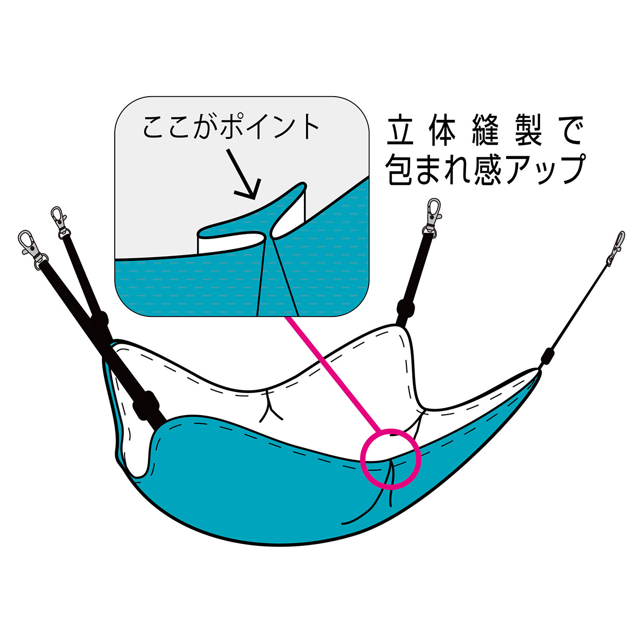 ・立体縫製で包まれ感アップ、幅が広いのでゆったり使える猫用ハンモックです。