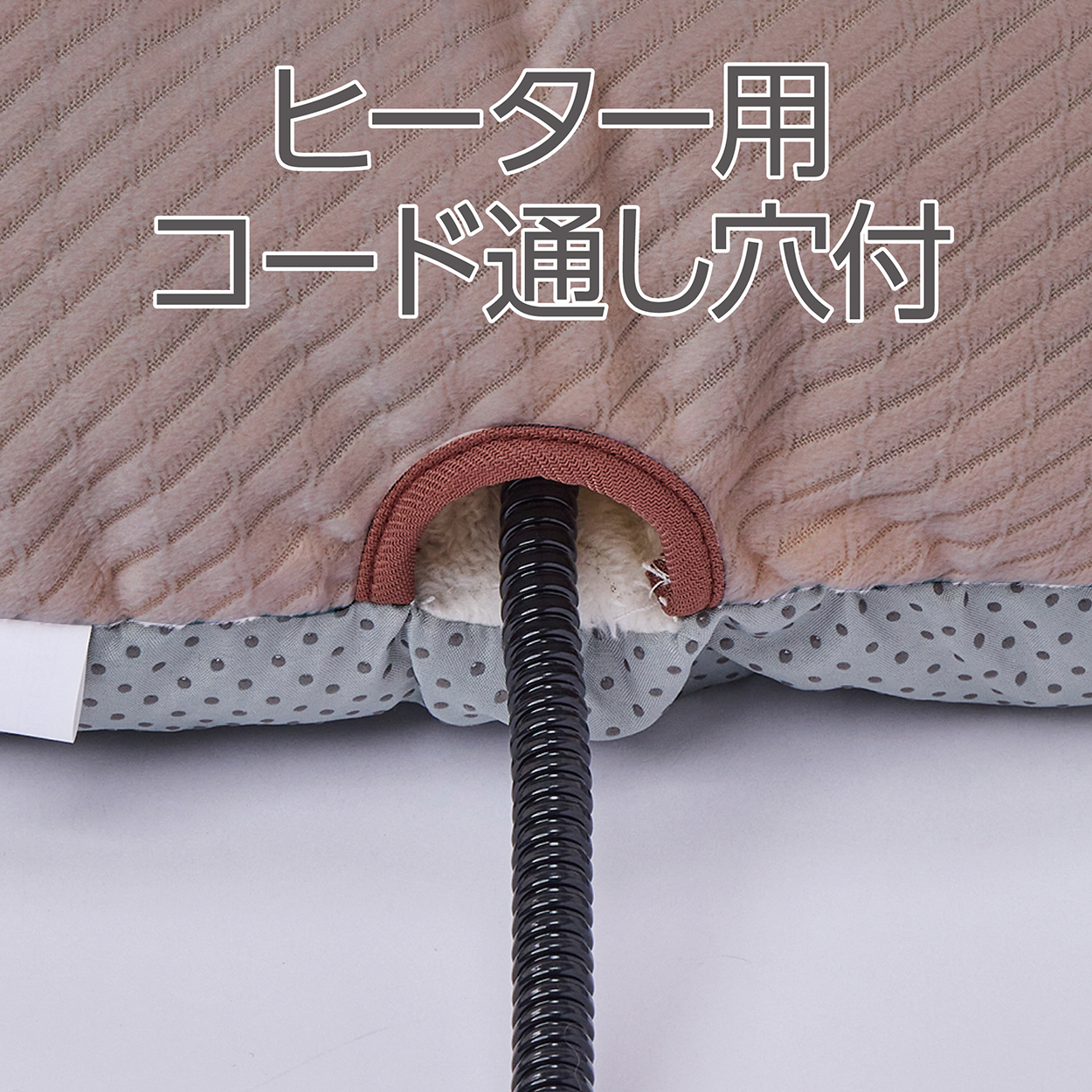 ・コード通し穴がついているから、ヒーターと合わせて使える